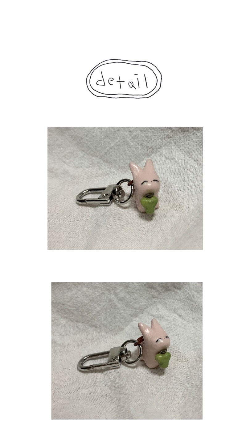 세잎클로버를 입에 물고 있는 귀여븐 토끼키링입니다.