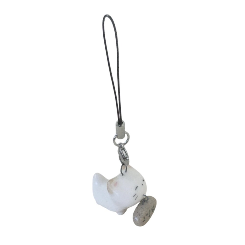 이름표를 물고 있는 고양이 키링입니다.